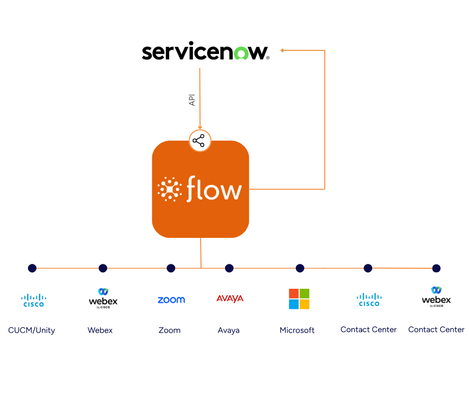 Kurmi provides integration between ServiceNow and 20+ UC systems, unifying their management into one single pane of glass.