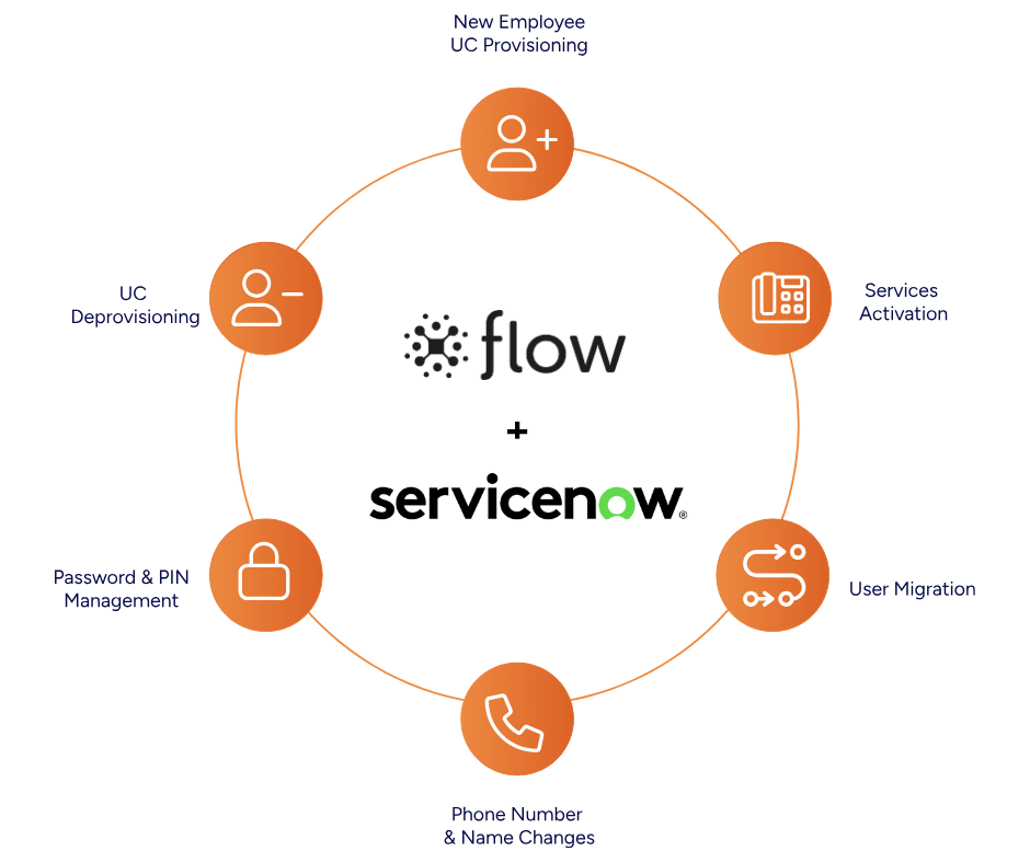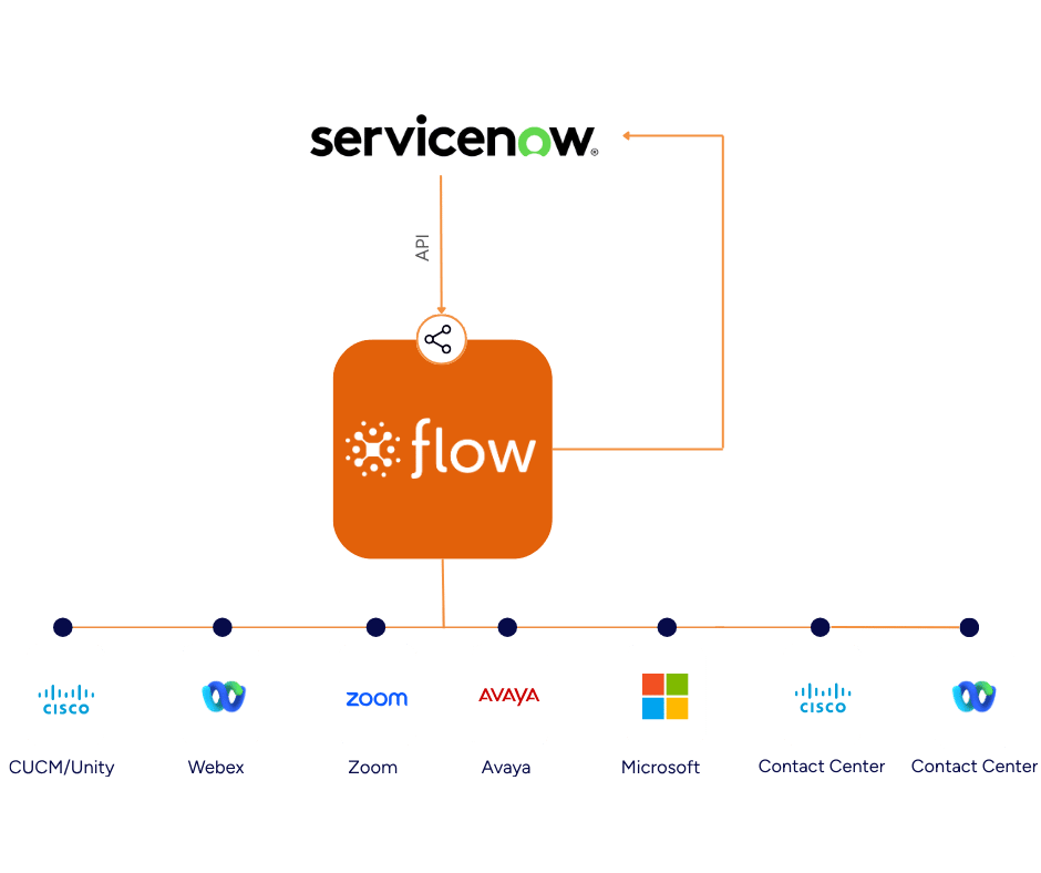 Flow provides integration between ServiceNow and 20+ UC&C systems, centralizing their management into one single pane of glass.